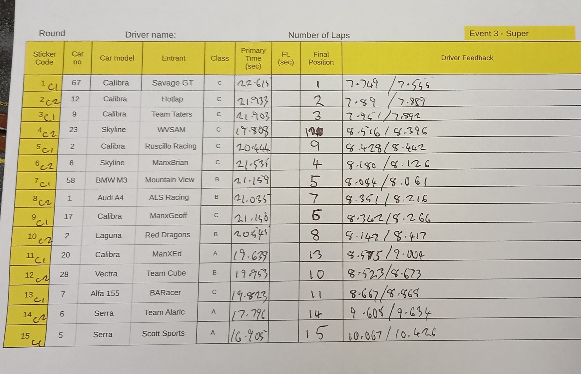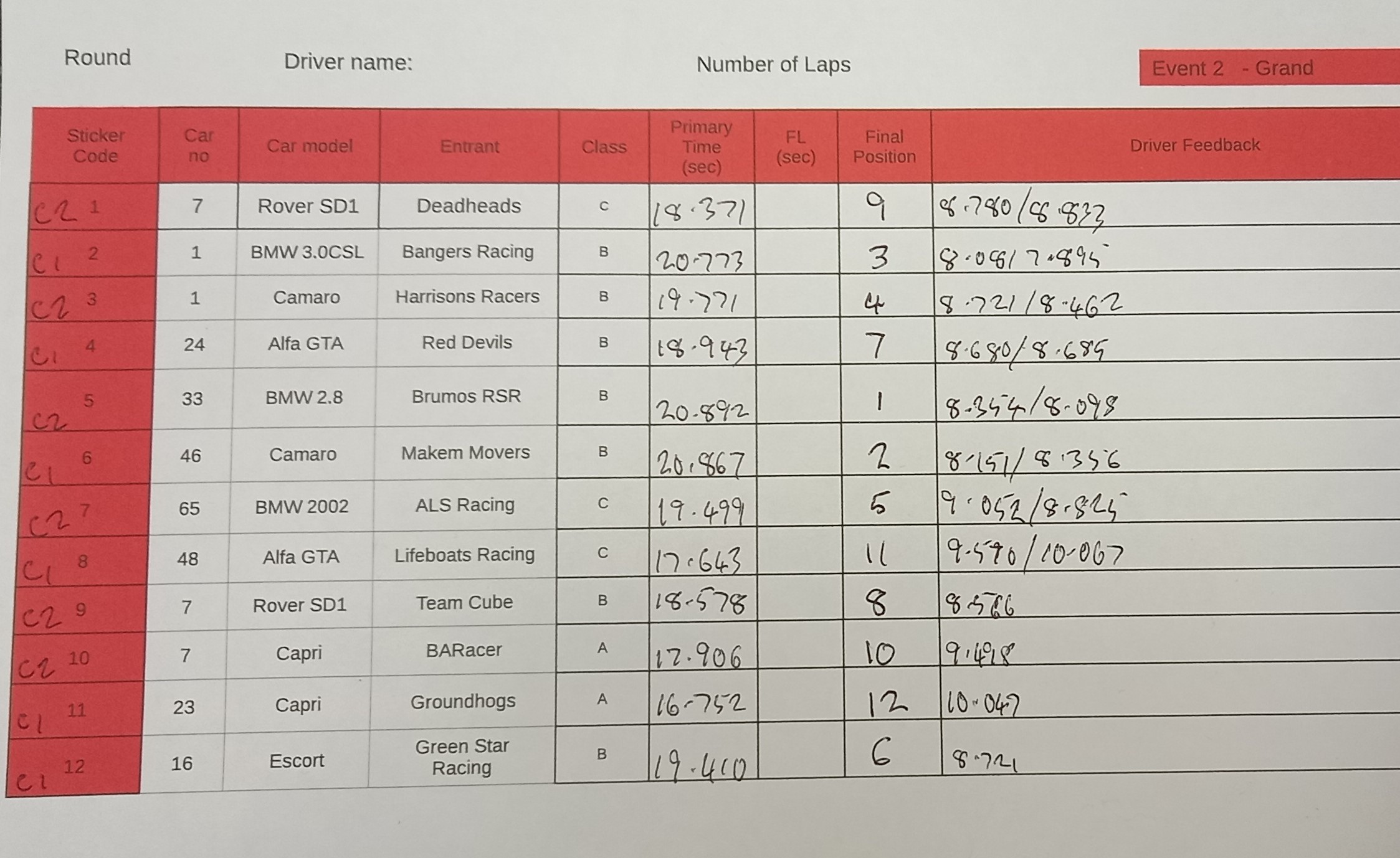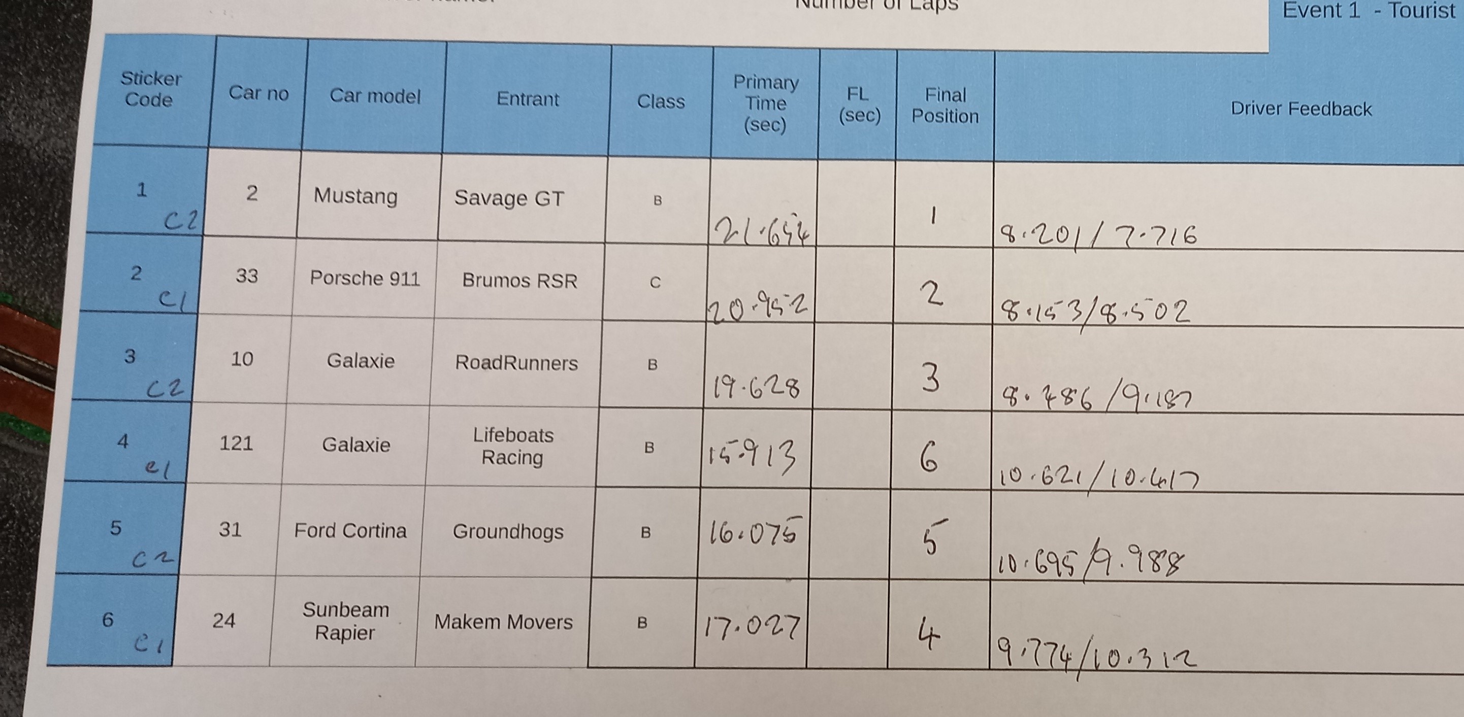 What I have taken from running this one is that we need to have more time between Rounds to allow for better checking of the cars and delivery logistics etc. Probably better instructions for the hosts. Maybe even fewer cars and less Rounds.