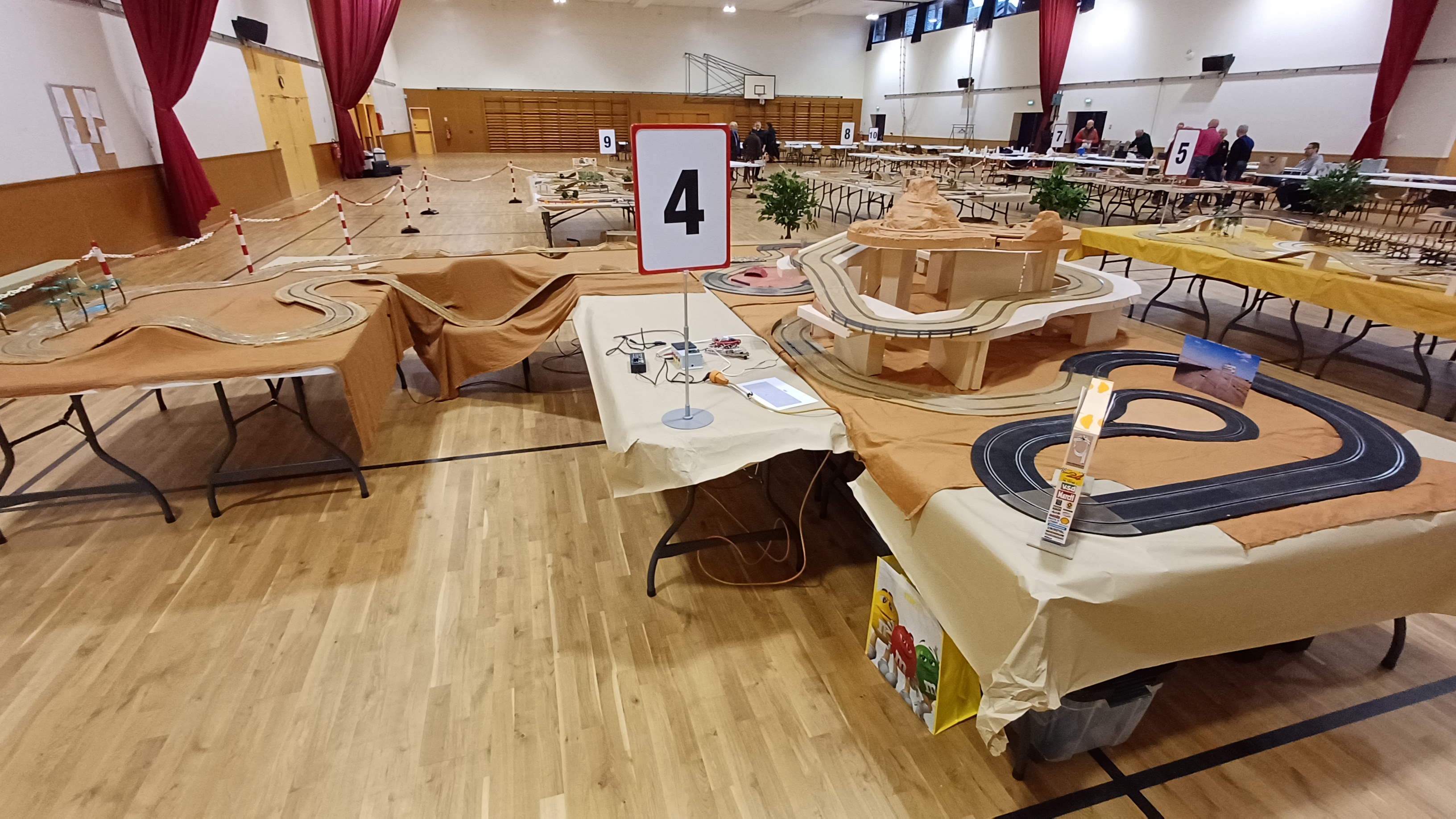 So on with the racing...the organiser Francois Favre and Martine watching over nine busy tracks
