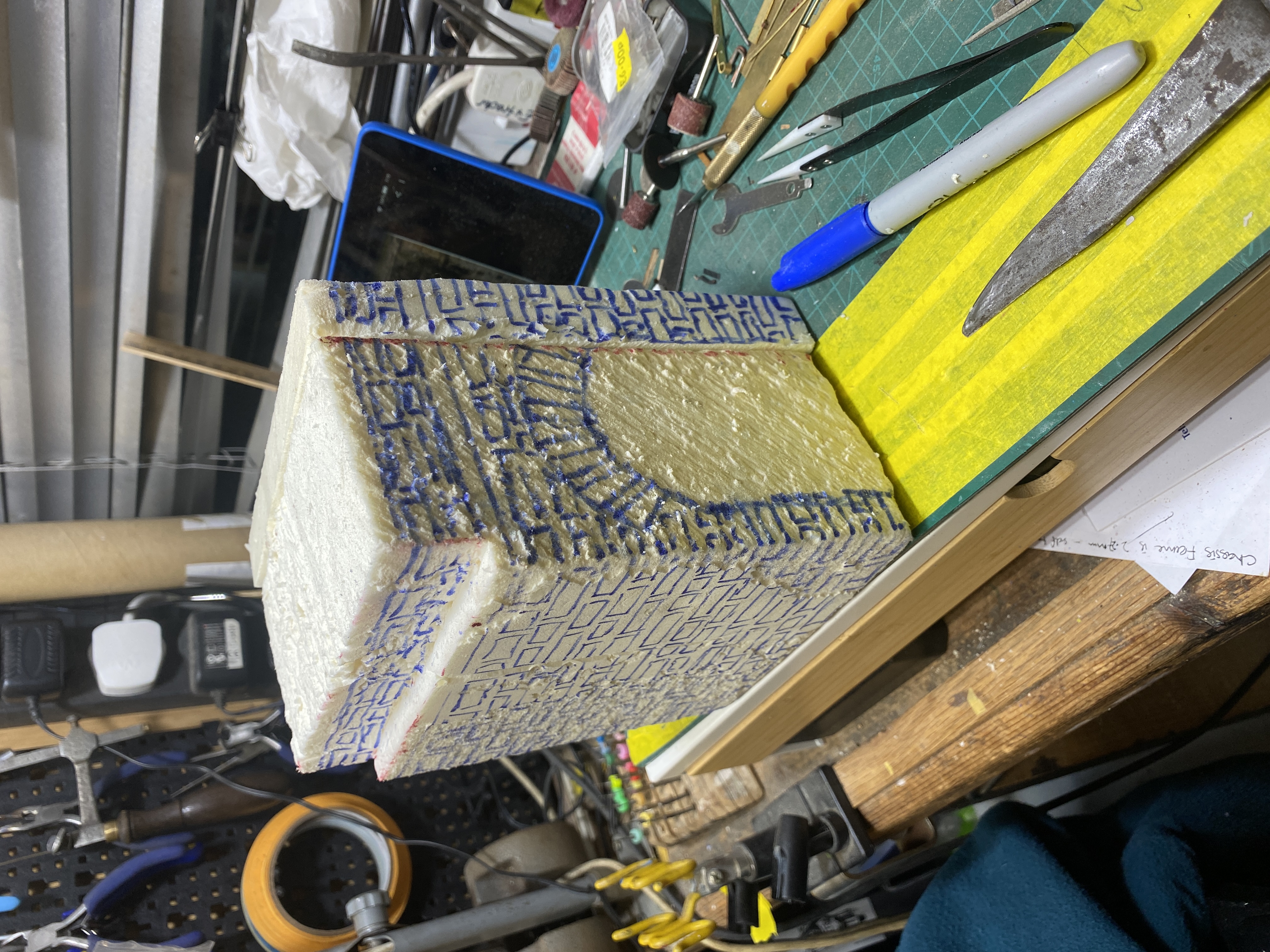 Then got a old soldering iron out and started shaping the bricks.