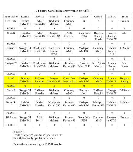 GT Sports Cars Slotting - Official Results & Reports