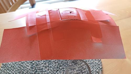 Just about to paint my first 'dark' body, so thought I ought to mask the zones behind where the light lenses go to keep them white.