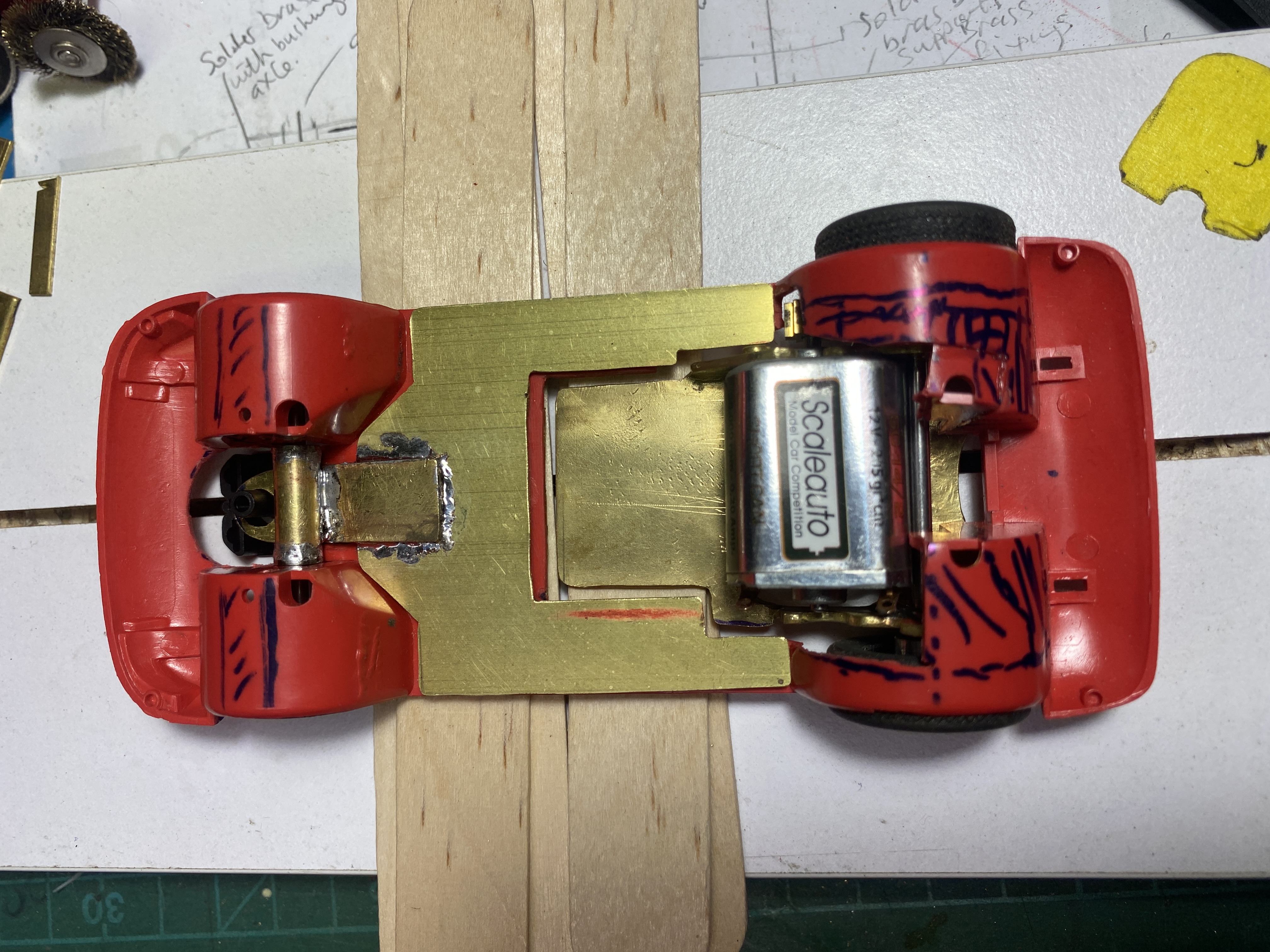 I have a Racer Sideways BMW M4 white kit to make up and saw the floating chassis and am trying to make a brass sidewinder motor mount that floats similar to that.