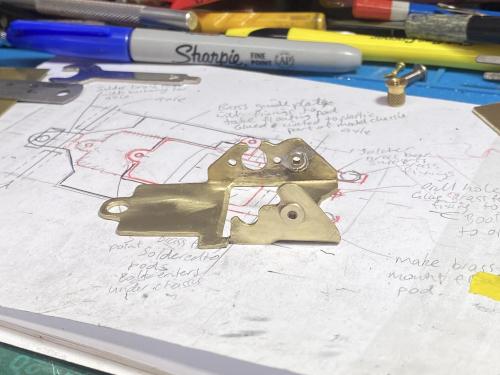 Next was a thinner brass plate to fix on to the plastic chassis and solder a guide tongue to that.