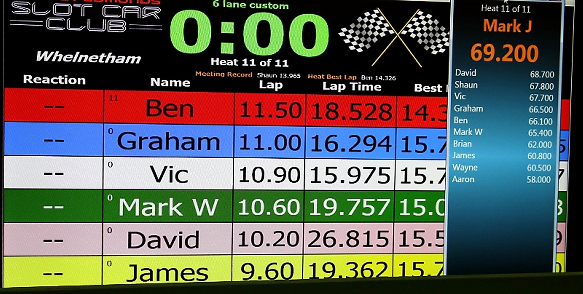 It proved decisive for Shaun and Vic too. Another fifth of a lap in this heat would have seen Vic dislodge Shaun from third spot but it wasn't to be, his score falling short as the power went off. It did secure him a good fourth place though, over a lap ahead of Graham in fifth.