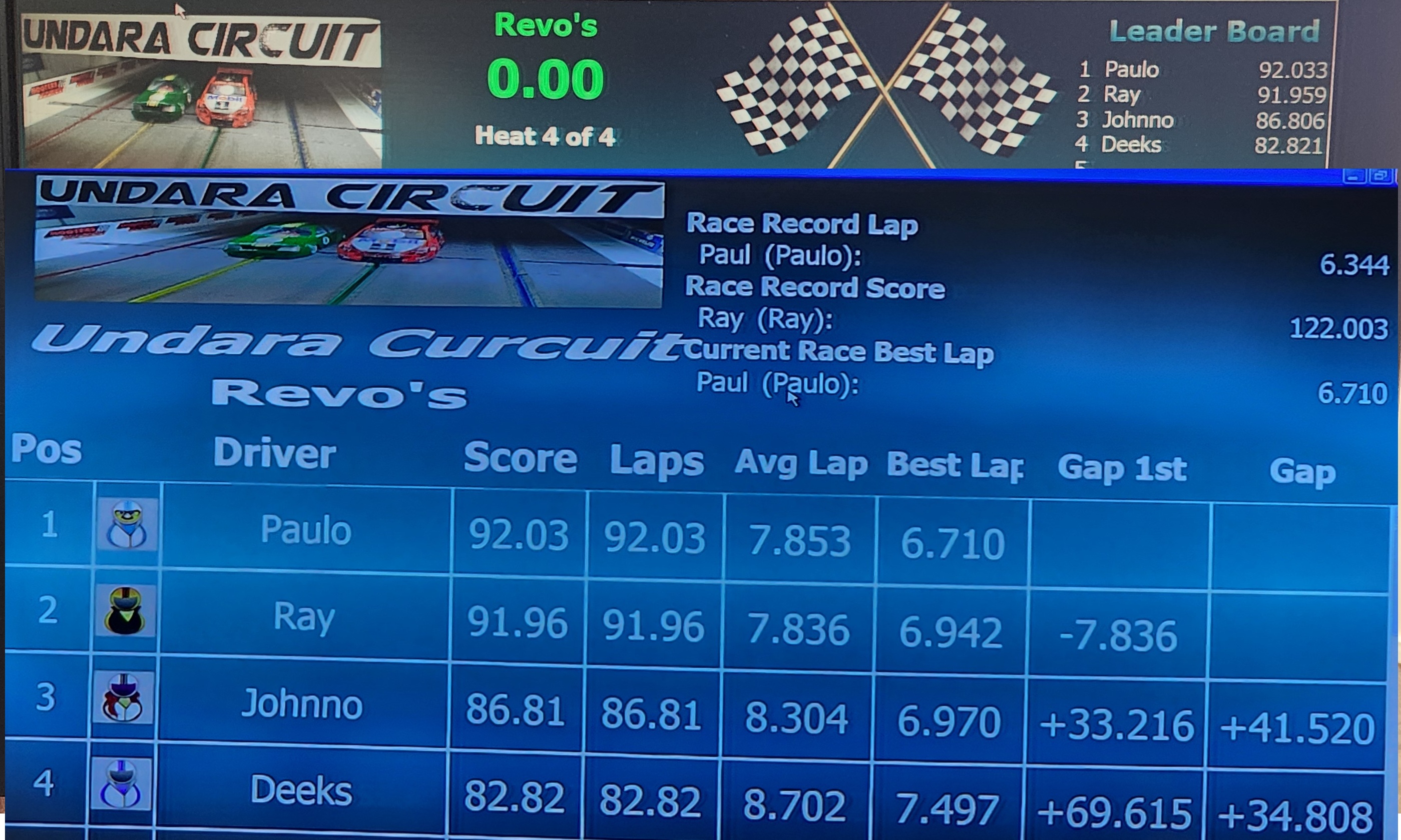 A few photo's of Leaderboard, Race Results and Podium