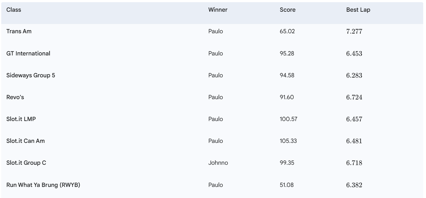 Slot.it Can-Am Race Results