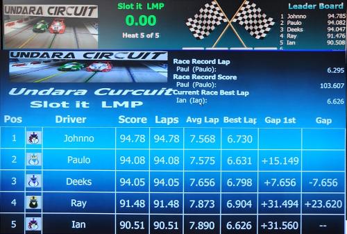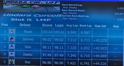 The Slot.it LMP class was a demonstration of consistency, with Paul again hitting a century score at 100.57, beating Ray and Johnno, who battled fiercely for the remaining podium spots.
