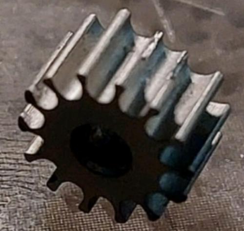 This is a slot.it ergal 6.5mm 14 tooth that was being used to drive a nylon anglewinder and you can see that the pinion is splintered.