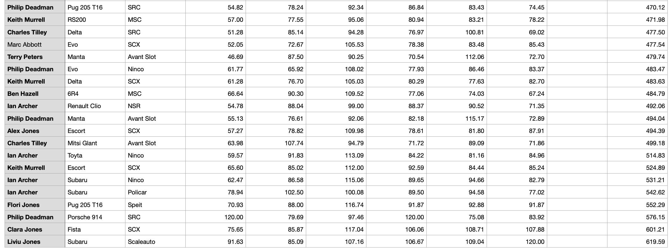 I'm as guilty as many others for running an SRC Porsche 914 in the Classic class, as it takes great preparation and driving skill to get any other car up at the top of the ranking. Pleased with the 'non-914' placing for my TR7, but chapeau to Woodcote with his Ninco entry!