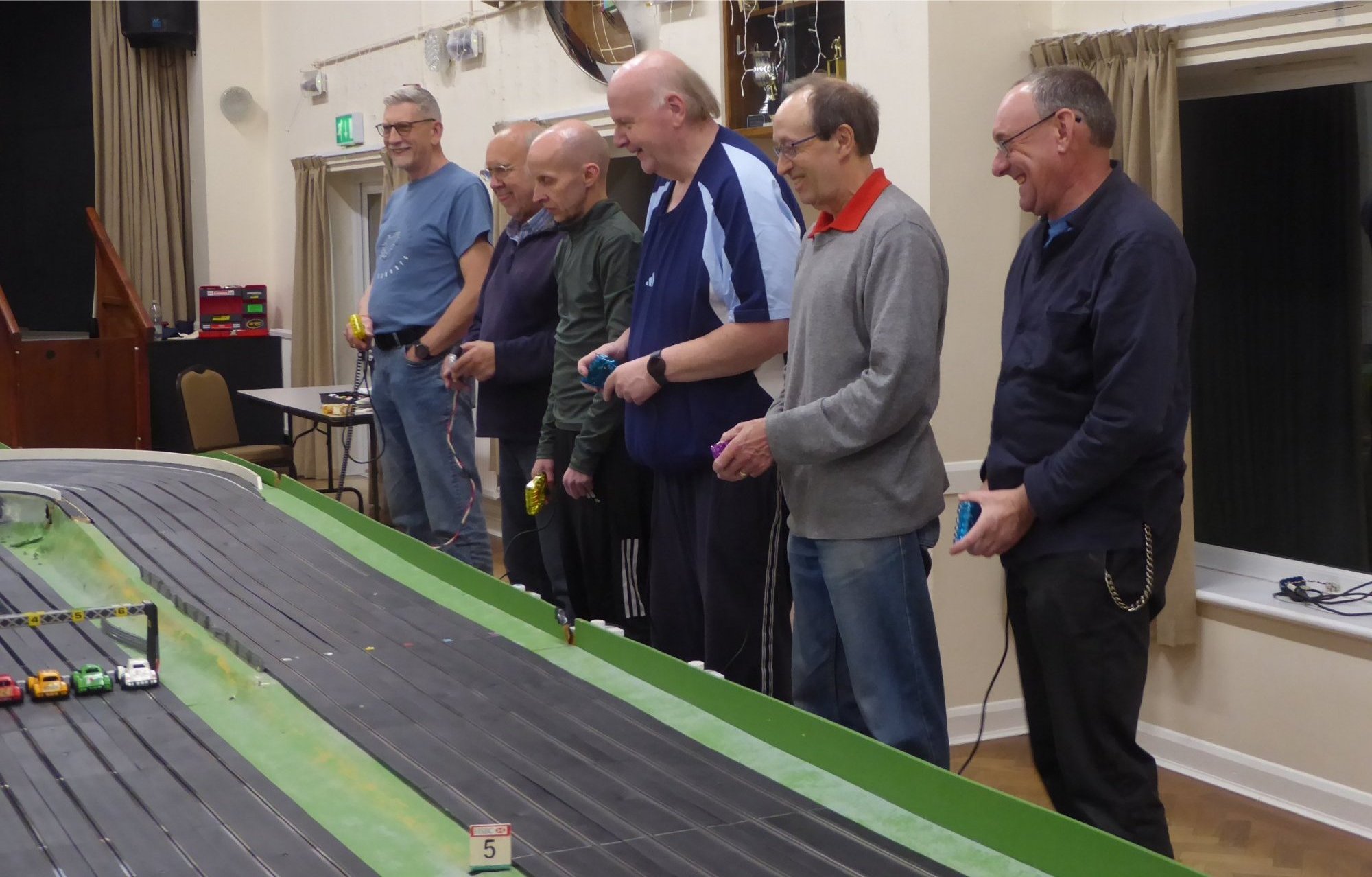 As darkness approached numbers dwindled to ten, those more distant having road works and narrow country lanes to contend with. The remainder settled in for the last class, stock Legends Pioneers. Wheels are glued and trued front and rear, guides held captive and shimmed and finally, although there had been no damage in previous races, all seven (six plus a back-up) are fitted with 3D printed 'unbreakable' bumpers. Having said 'no damage in previous races', racing was so close this time that one mirror temporarily went AWOL! As with the trucks, the Legends were totally reliable, all braids remaining firmly in place at last.