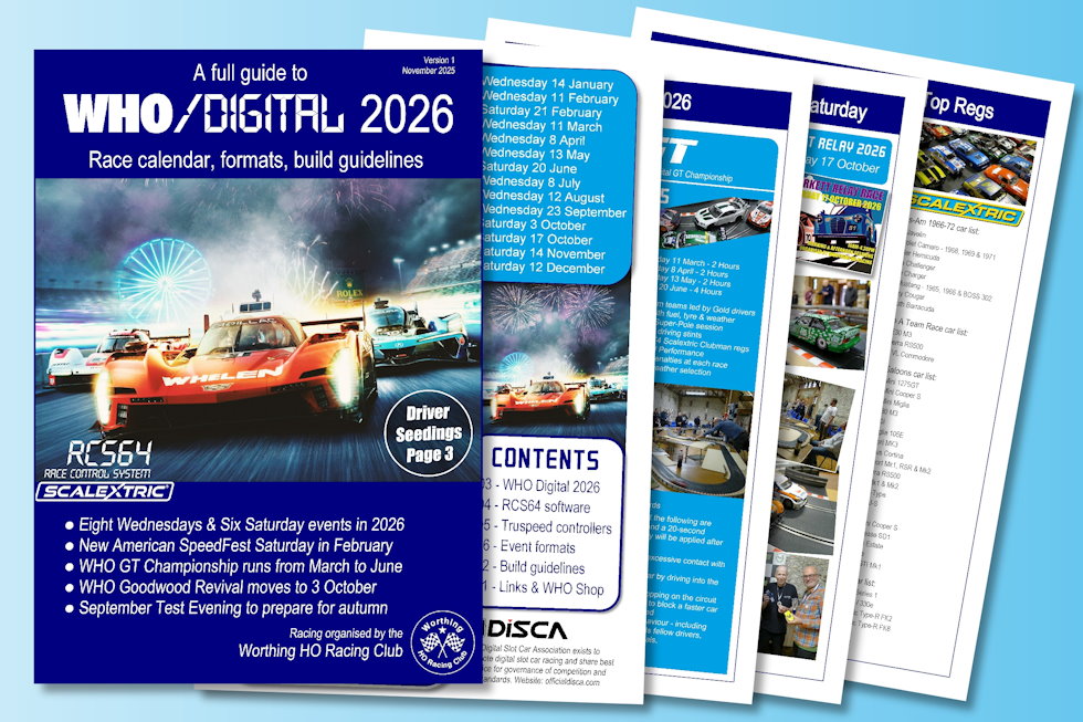 More details about our WHO Slot Rally, Scalextric Digital and HO scale formats and regulations for next season will follow very soon.