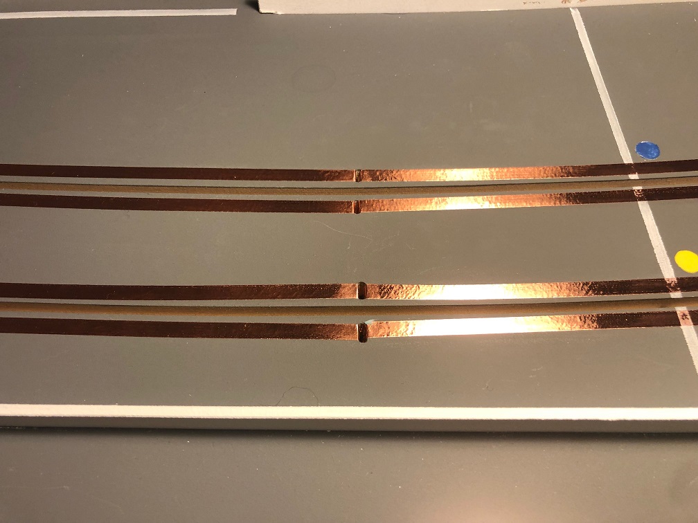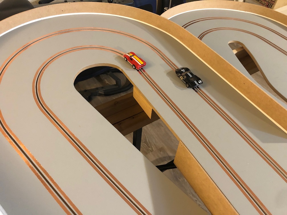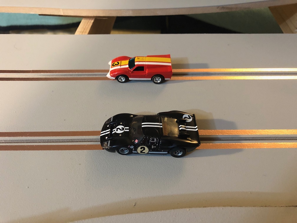 I asked the builder for a bit more lane spacing than regular HO. You can still take the other guy out in a corner if needed.