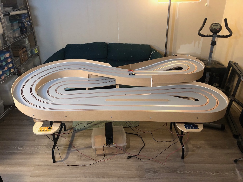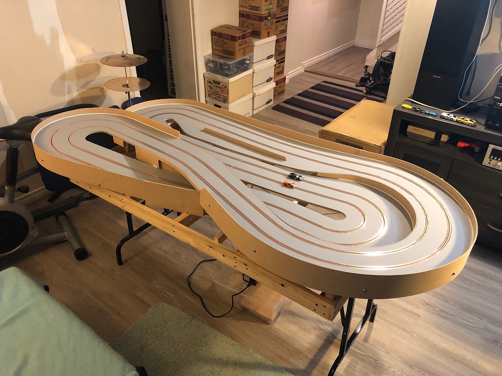 This is on a 3' by 7' foot base. The track is 3/8" inch MDF. Burnishing is next followed by wiring and power.