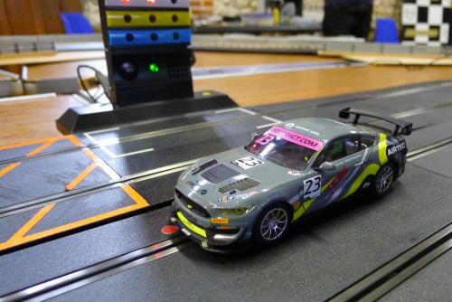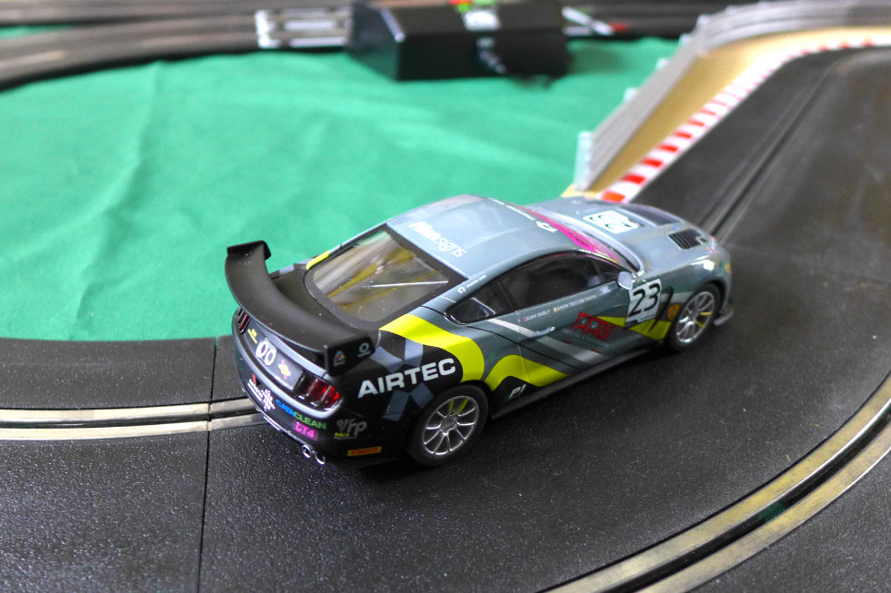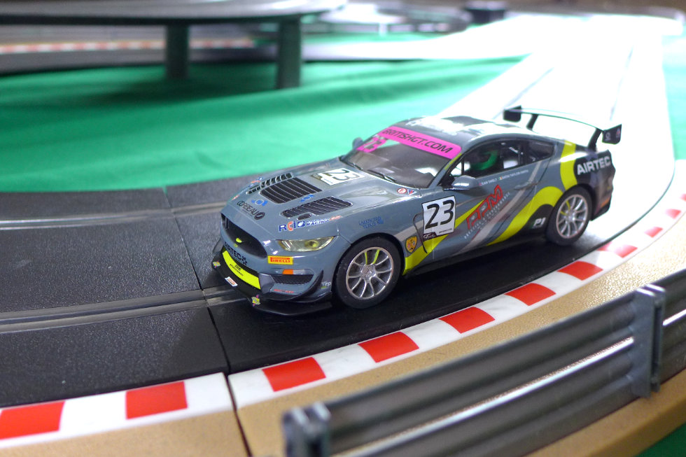 But first, I need to do some maintenance on our Mustang GT4 test car and give our Jadlam SL6 test track a good clean. Unbelievably, the last tune-up session was five months ago, so I’d expect performance to have dropped off. I cleaned the track as I usually do with a slightly damp cloth and then run a car round with a drop of INOX MX3 on each braid. I then rolled the Mustang’s rear tyres on masking tape. Over a couple of two minute races, the ARC app gave a best score of 23 laps and a best lap time of 4.82 seconds. That’s not where we were back in December – hitting a high of 26 laps and a best of 4.23 seconds. However, it did remind me how much fun this car is to drive – I just love the controllable tail-out action the Mustang provides.