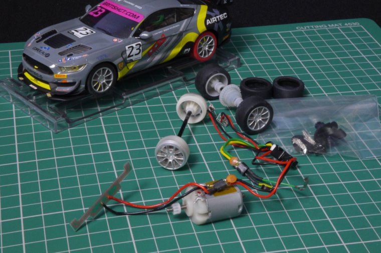 In this blog post I am going to concentrate on the front end of the car – getting the guide down into the slot, reducing grip on the front tyres and adding a little weight to the car. I am sticking with all the standard parts that came with the Mustang and introducing important techniques for future tweaking and tuning.
