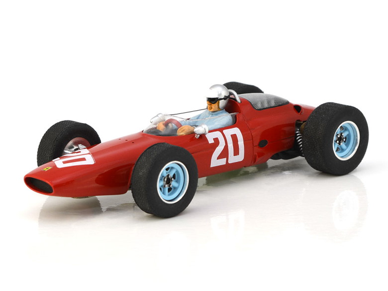 The model is of the car driven by Lorenzo Bandini at the 1964 Monaco Grand Prix. The 156 'Aero' was the 1963 update of the 156 'Sharknose' that had taken the drivers' and constructors' titles in 1961. The updated car had the same 1.5 litre V6 engine, but with fuel injection increasing the power output. The main difference was the more traditional nose section. John Surtees drove the 'Aero' version to fourth place in the 1963 world championship, winning at the Nürburgring - his first Grand Prix victory.