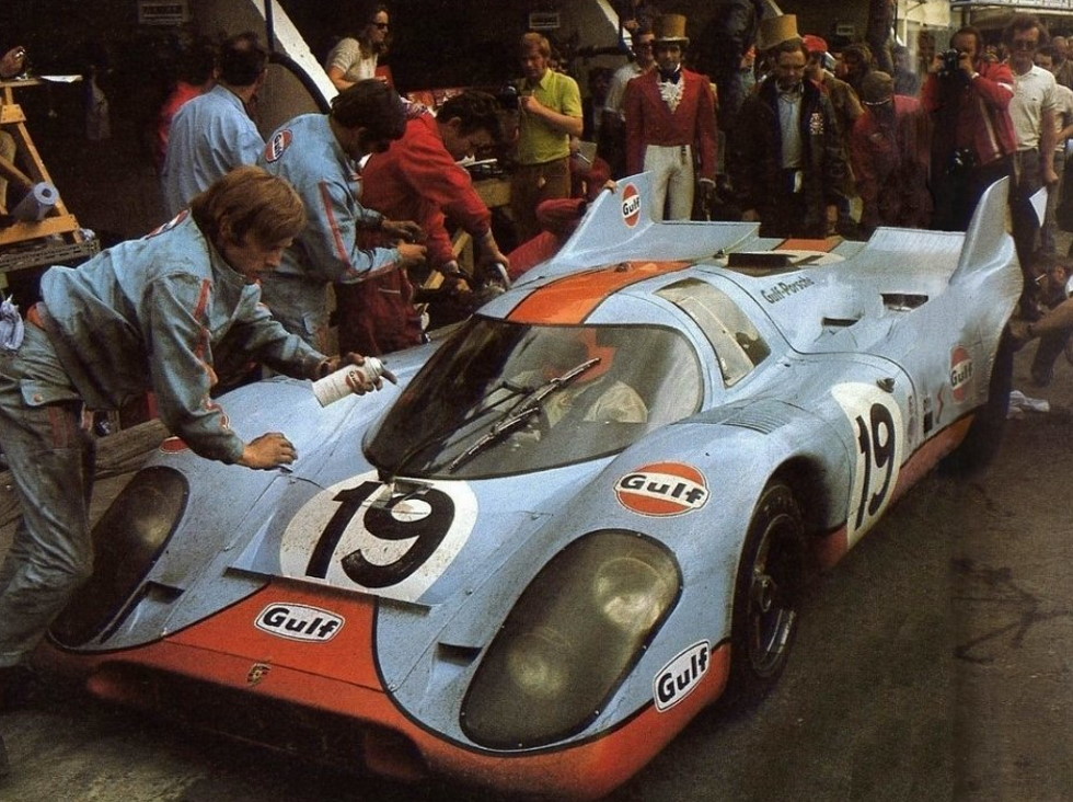 The Gulf cars had been running 1-2-3 through Saturday evening, the #19 sitting second. However, the night was a disaster for John Wyer's team. First, the #17 of Siffert and Bell lost an hour in the pits, then leader Jackie Oliver lost half an hour - both with gearbox issues. The #19 Porsche followed having lost fifth gear and over 30 minutes in the pits. By dawn, Attwood and Müller had battled back up to second place, but could not close the gap on the leading Martini Porsche 917k of Gijs van Lennep and Helmut Marko. That's how it finished. The iconic Gulf Porsches missed out on a final chance to win at Le Mans.
