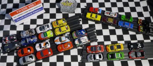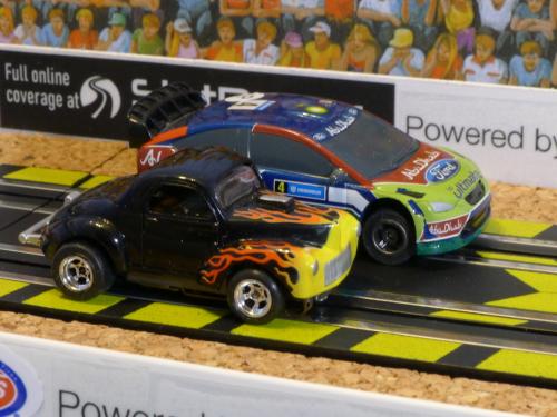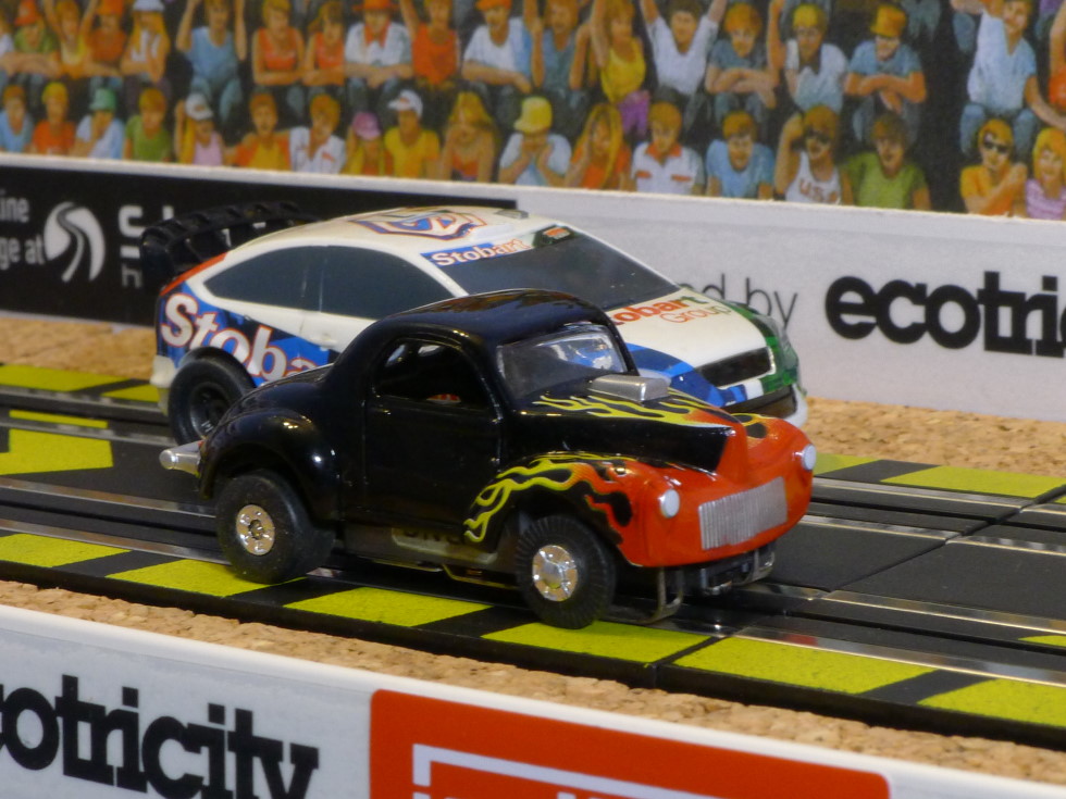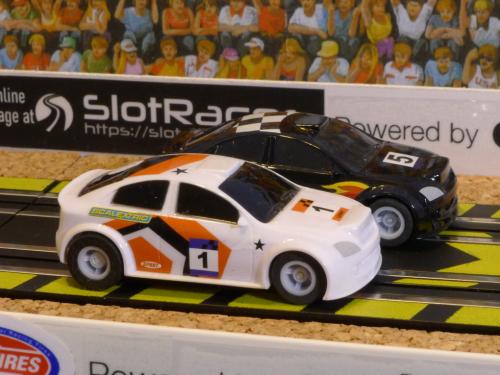 Here are some pics of the final arrivals, ready for scrutineering today and qualifying tomorrow. First, Terry's two Micro Scalextric Team Rally hatchbacks - one for Street Stock and one for Super Stock...