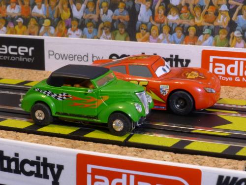Inside were Doug's Lightning McQueen Street Stock car and a lovely little '38 Ford Coupe T-Jet...