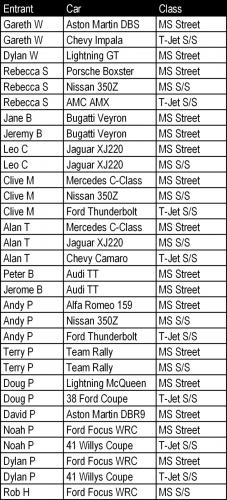 David has sent just an Aston Martin DBR9 for Street Stock, although may be involved in some NHRA Pro Stock match racing with his dad...