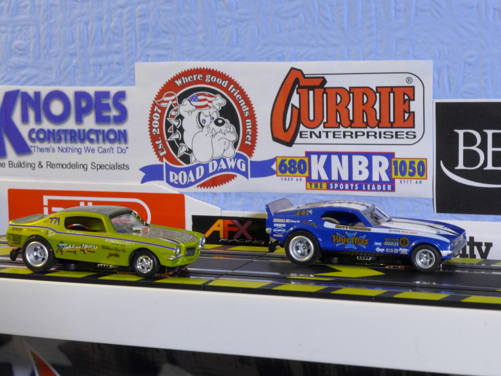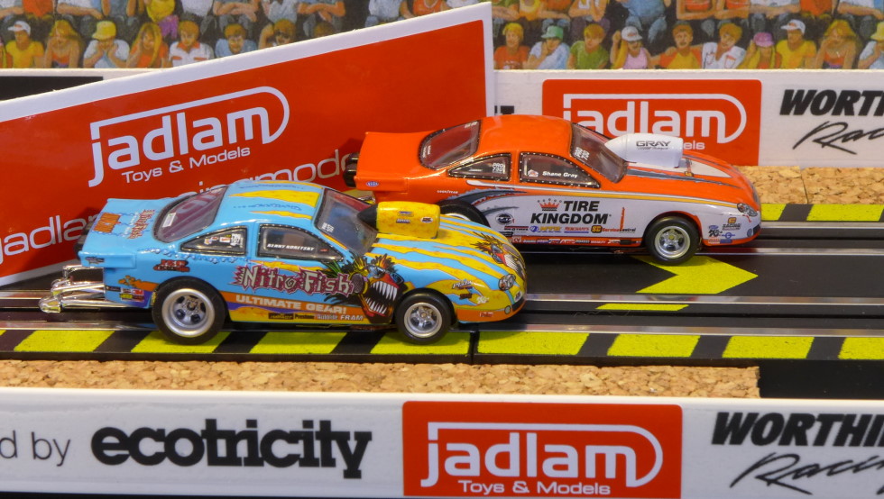 There was also time for some modern NHRA cars to match race - Dylan and Noah in Top Fuelers, with David and Doug in the lovely Pro Stock cars - all Auto World models with the 4-Gear chassis.