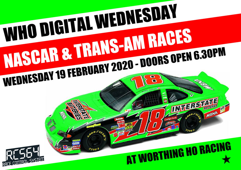 We will start the evening with a Club Car Team Race and end with a Trans-Am pairs race. Doors open at 6.30pm for practice, racing starts at 7 and we aim to finish all the action by 9.45. The team race will finish at 8.30, if you can only stay for part of the evening. Entry is £3 (£2 for under-16s). All equipment is provided for the team race and there should be plenty of spare places in the Trans-Am race.