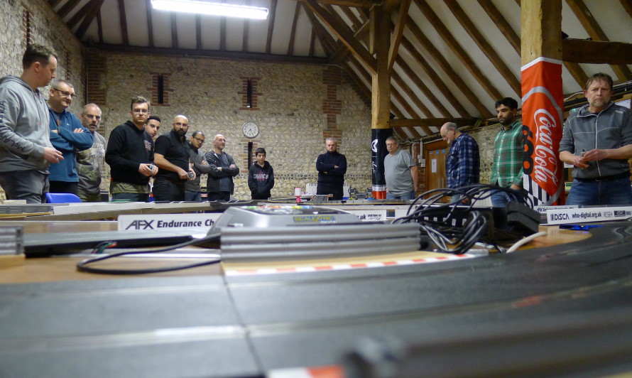 Despite the aftermath of Storm Dennis, plenty of half-term roadworks and the ongoing coronavirus outbreak on this part of the south coast, twenty-six people came along to the Barn for what would be an exciting evening of Scalextric digital racing. We welcomed Waseem for his first digital event, but there were also other digital novices – Ed and John W were back for second go, plus Andy D joined us for the first time in a long while.