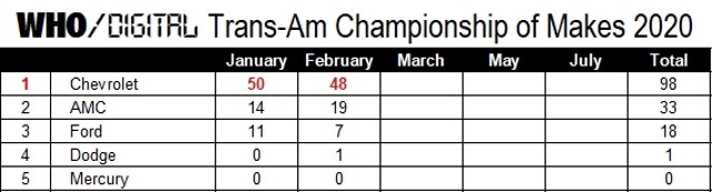 It was Ed and Jean's Chaparral Camaro that took pole position for the feature race. However, a disastrous pit stop sequence dropped them back in the race, leaving the Camaro of Mike and Graham to battle Round One winners Oliver and Ryan...