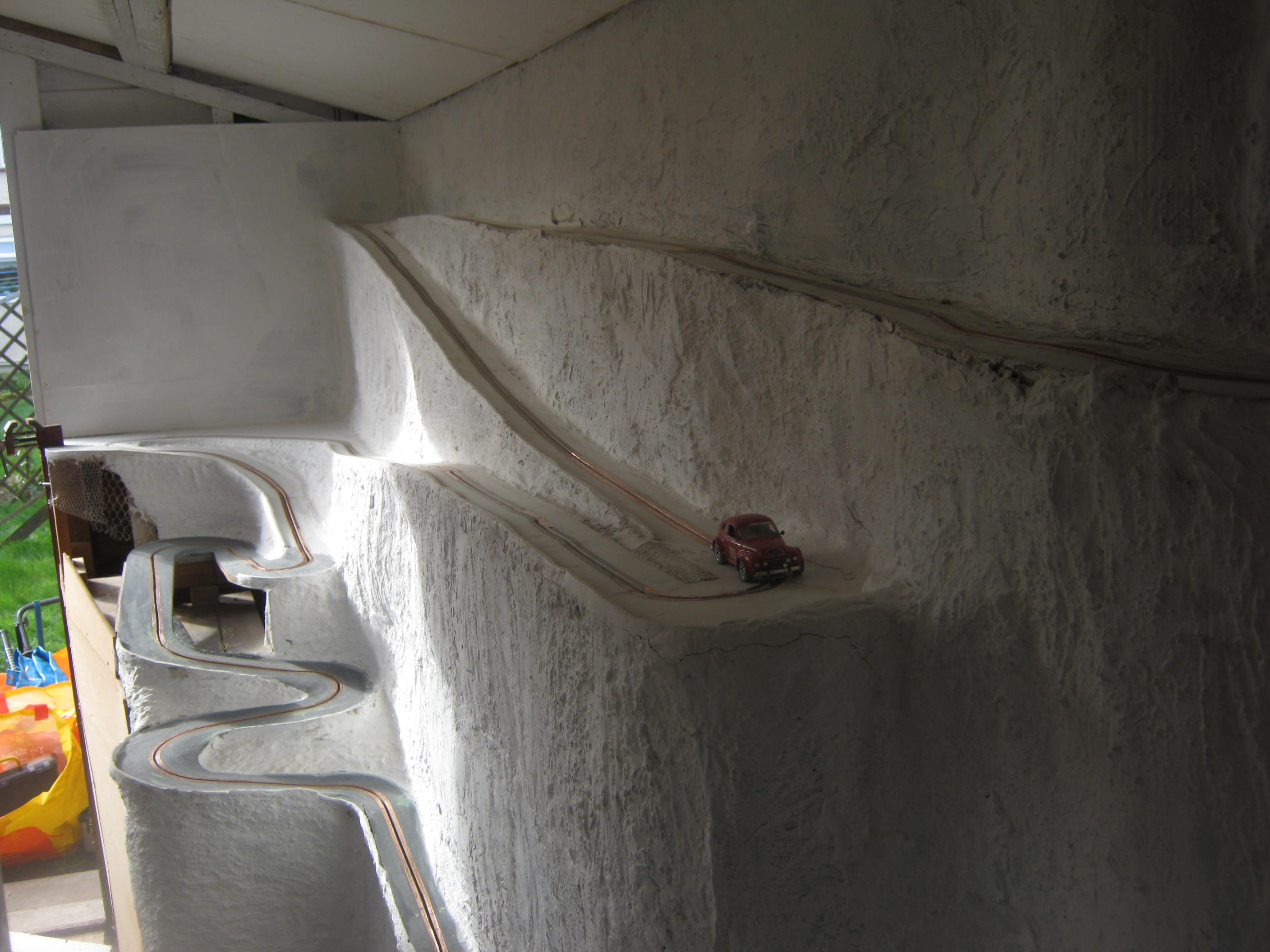 This is a mountain rally stage built for 1/43 scale slot cars and is very loosely based on the Col de Turini in the French Alps. The track is challenging to drive and the fastest lap time so far has been around 25 seconds.