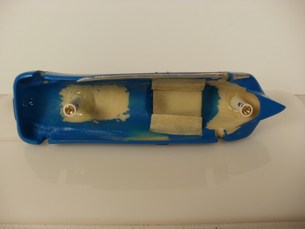 The aluminum chassis Bugatti pictured below came in first place against a field of all brass/wire chassis cars, white Auto Union excepted. The white Auto Union came in 3rd. It too has an aluminum chassis. Another one of my strange scratch-builds.
