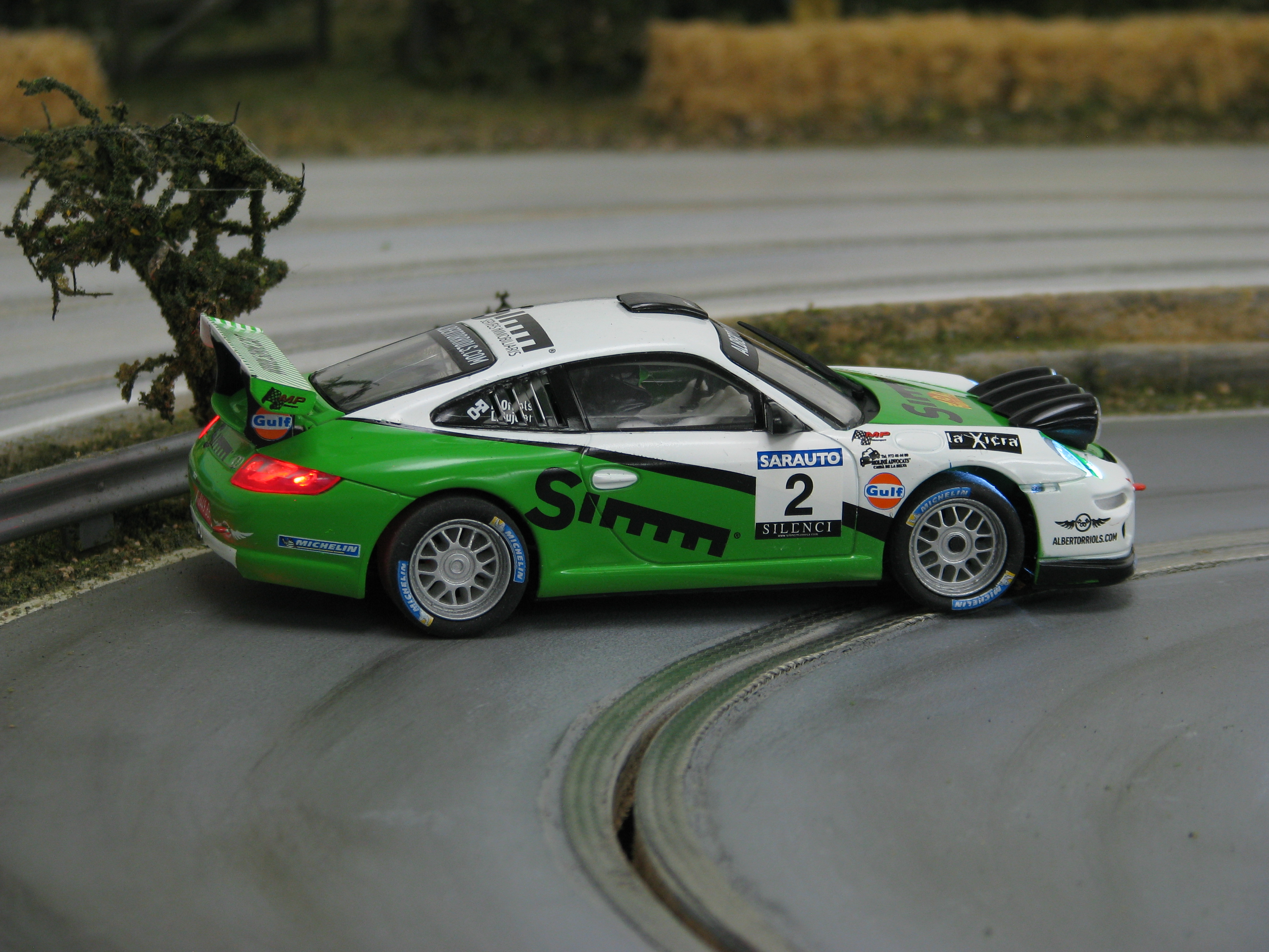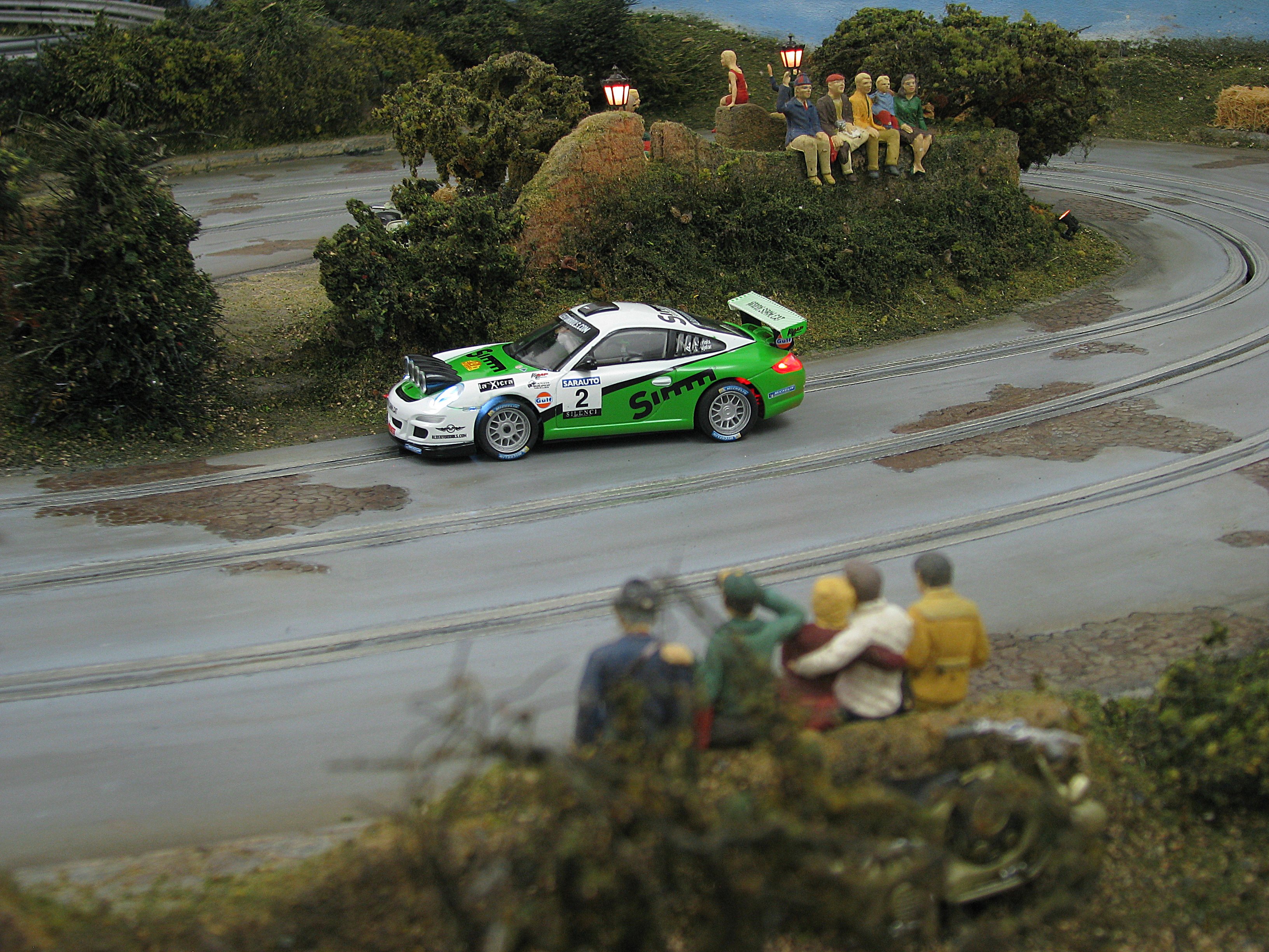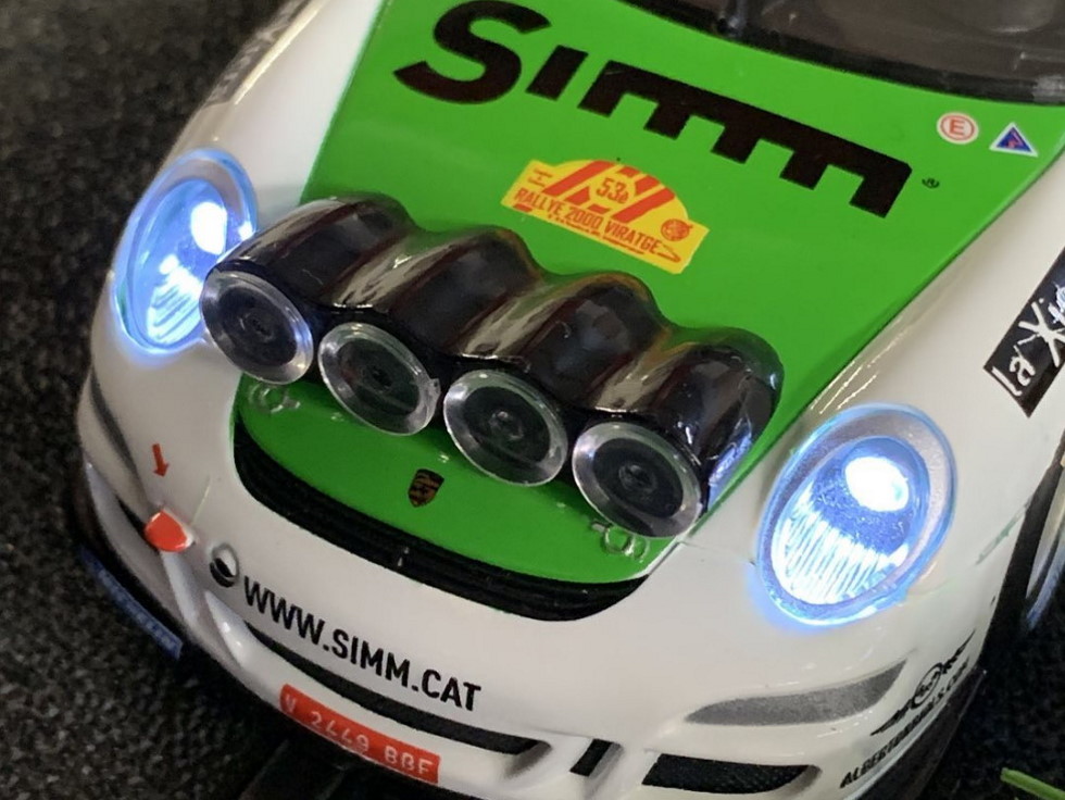 A shipment from SCX is expected in the UK very soon. Among various sets and GT cars (1/32 and 1/43 scale) is this lovely-looking rally car, modelled on the Escudería Osona Porsche 997 GT3 RS which won the Rally 2000 Viratges (2000 corners) in 2013, driven by Albert Orriols and Lluis Pujolar. Already available in Spain, these photos have been shared by SCX...