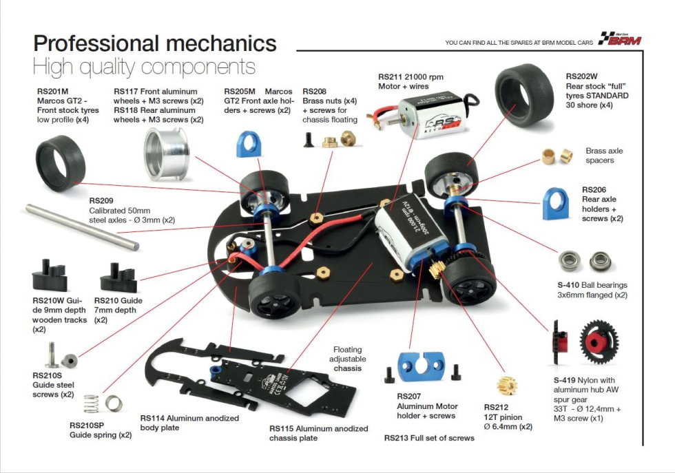 All these 1/32 scale cars are equipped with an aluminium chassis and high-quality components from BRM. Pendle Slot Racing also produce a separate 3D printed plastic chassis for the Marcos, Viper and Supra.