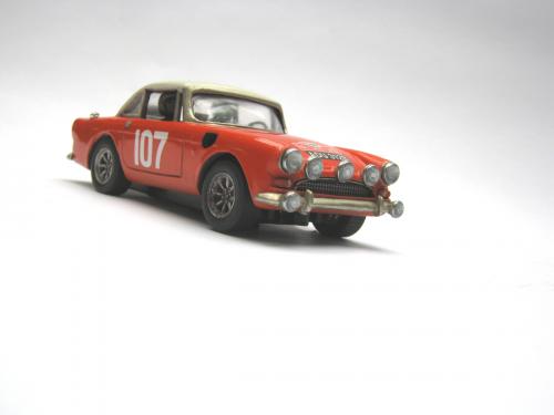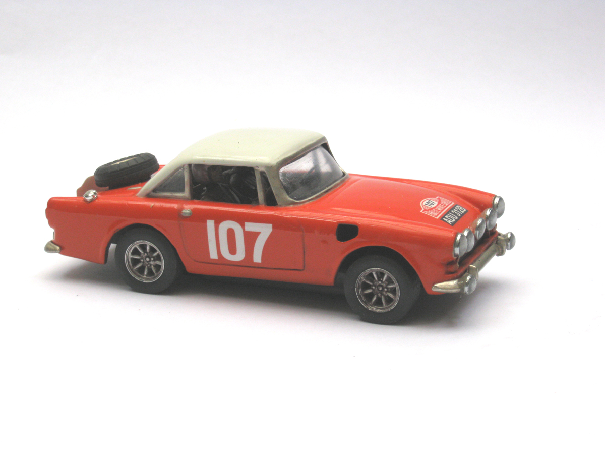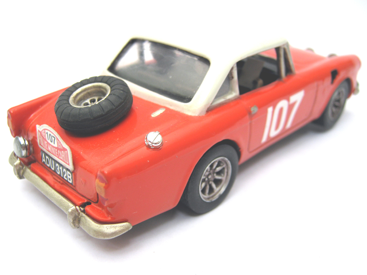 It's Peter Harper's Sunbeam Tiger, which finished 4th in the 1965 Monte Carlo Rally. I've always thought the Sunbeam Alpine was a handsome car, and the exterior of the resin model from Pendle's seemed fairly accurate to me.
