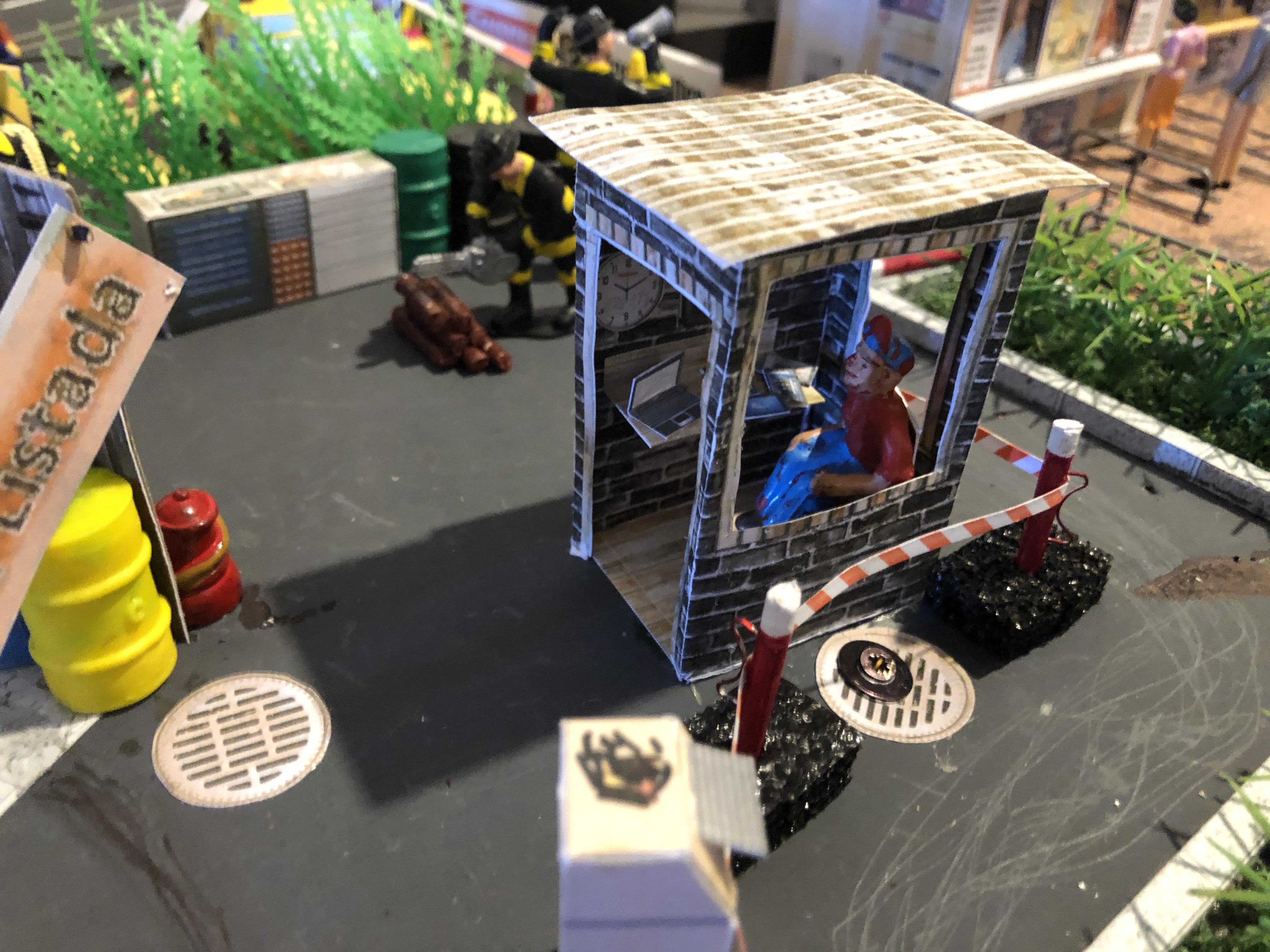 Clearly, there is always something to do. After completing the rough design and the distribution and positioning of the respective mottos, further fine-tuning work was carried out, which will probably take some time. Due to the modular construction of each motif on its own 5 millimeter thick foam sheet, it can easily be removed and reworked without affecting the railway itself. In the beginning, for example, the figures were missing everywhere, the tools in the workshop, etc.