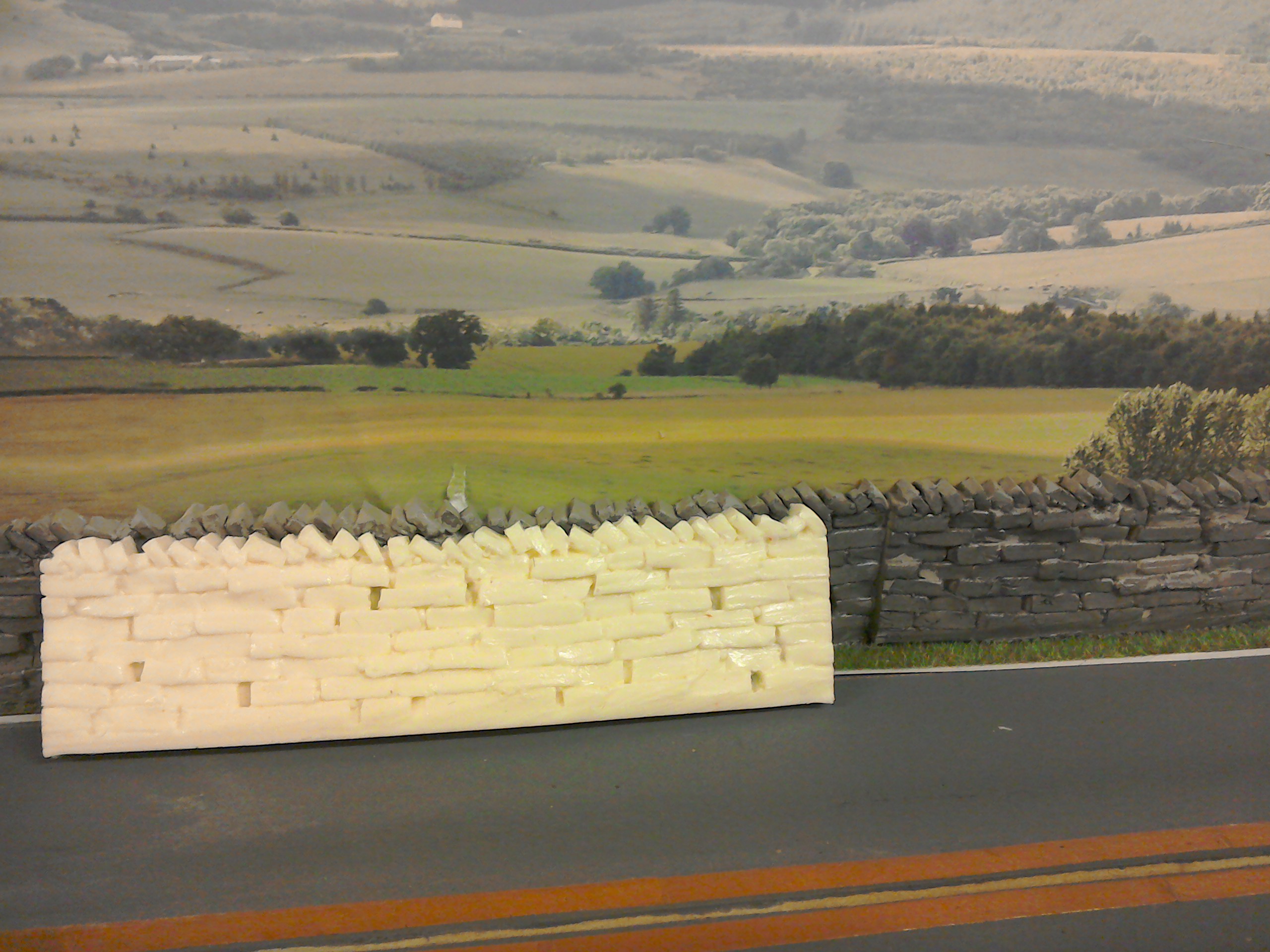 Unpainted dry stone walls and straw bale sets £3.00 each.