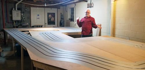 3) BENT TREE RACEWAY ~ Rob Fowler's newest track, 90' four-lane CNC-routed mdf with 4" lane spacing, Winston-Salem, NC.