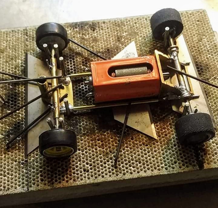 Mini Thunder Saloon with big arches. Brass and wire + pans. Inline. Pendle mini tyres. Currently running a pioneer Dixie motor...great fun ?