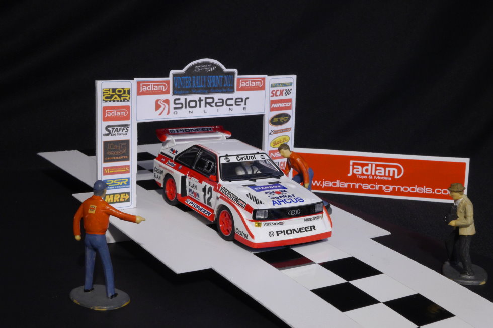 B9 Oli Abbott - Audi Sport Quattro E2 RallyX #12. WHO/digital and South Downs Slot Car Club racer Oli is hosting two stages of the rally-sprint. His Audi almost didn't make it - the parcel was delivered to the wrong address.