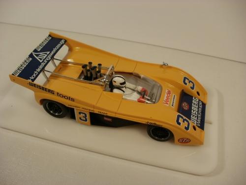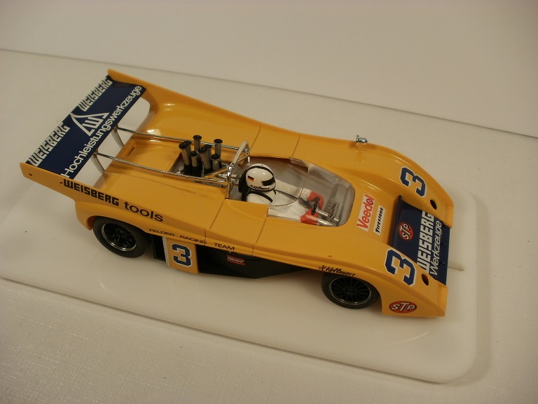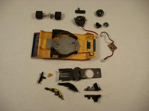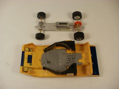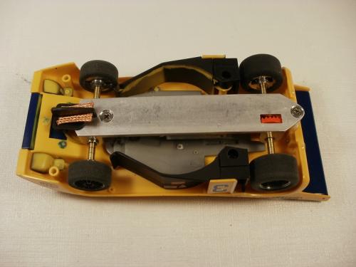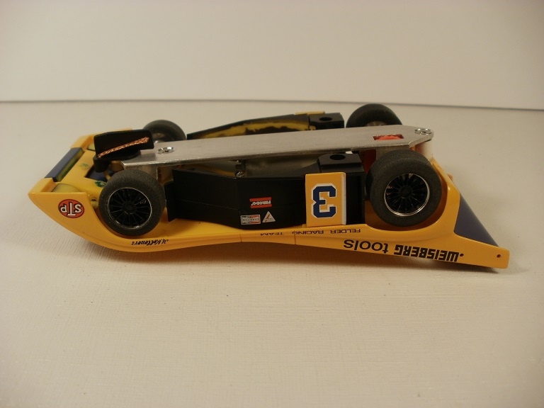 The aluminum scratch chassis with bearings, Slot.It magnesium wheels, and trued urethane tires are a slight improvement over the original parts.