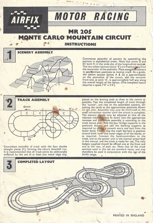 Although new to slotcars i have hade a track since 1970 which i got for Xmas aged 7 months. Its the Airfix Monte Carlo, qhich over the years got lost etc. Having opened the box a few months ago to see the amount missing etc. Ive bought two sets to make one but unfortunatly no instructions. So if anyone has a copy they can copy to me it will be very much apprecaited.