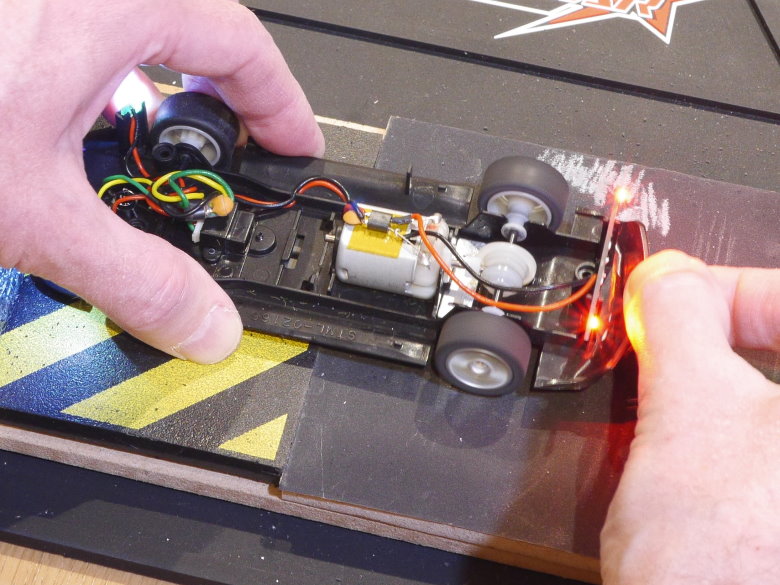It wasn’t a difficult job and I had all the kit and materials lying around. To avoid the soldering and need for a power supply, you can use a Scalextric powerbase, power supply and controller – the C8545 powerbase can be picked up new for less than £5. The plastic and metal connectors will need to be cut from one end to allow the sanding block to sit snuggly. You can slice the track in half length-ways if you want to. You’ll need both hands to concentrate on the car, so either wrap a rubber band around the controller trigger to give permanent full power - or remove the controller from the plug and connect the two wires on the plug.