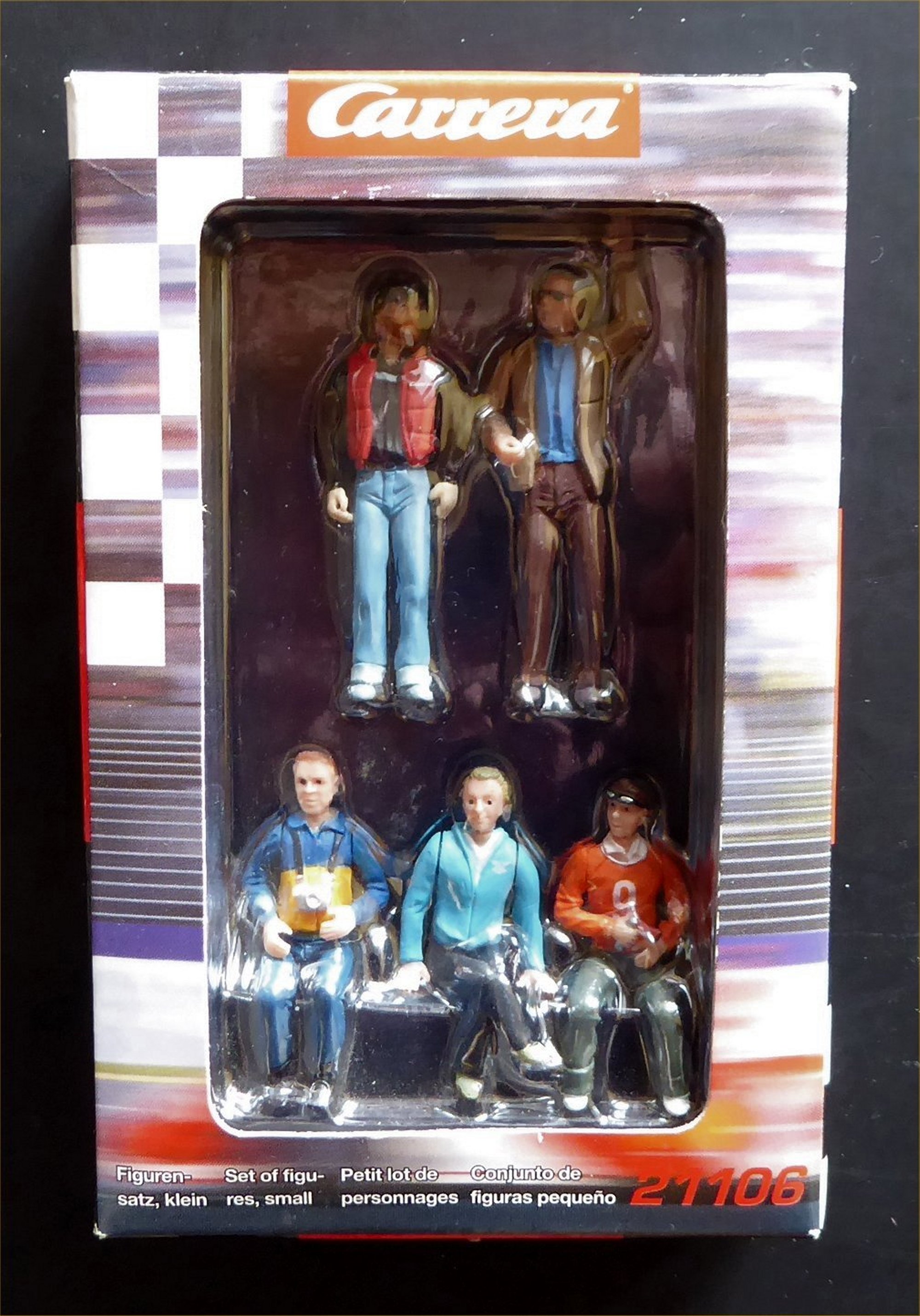 Set 3) Five boxed spectator Carrera figures. (Set 21106) Three seated, two standing £10.00