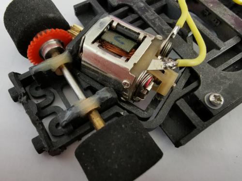 These motors are certainly a different beast to what's in a standard plastic slot car. Even at the RTR entry-level end, like the Parma 16D in my Flexi -2 chassis below, they'll be pulling a good 3 amps or so...