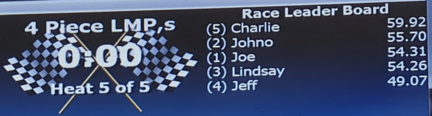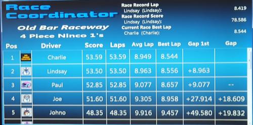 Current Lap Record: Lindsay with 8.419