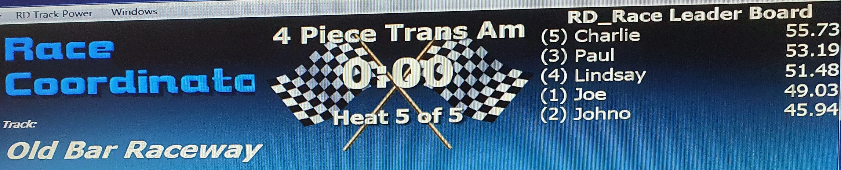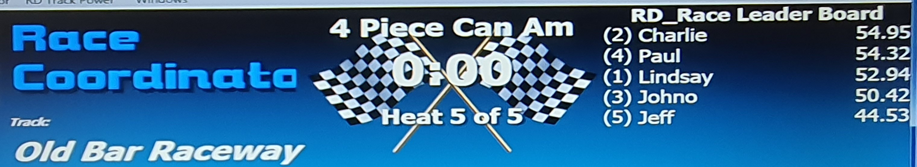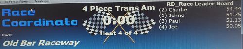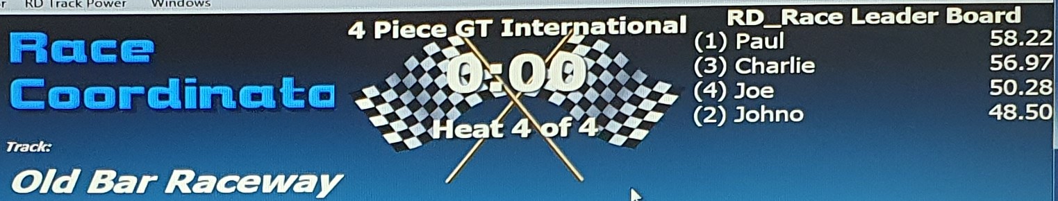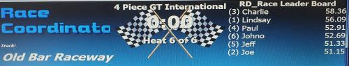 Without further jibbering on, here are the Leaderboard, Podium photos, Race screen and the Heat screen for racing at Wed 22nd September, 2021 at Old Bar Raceway.
