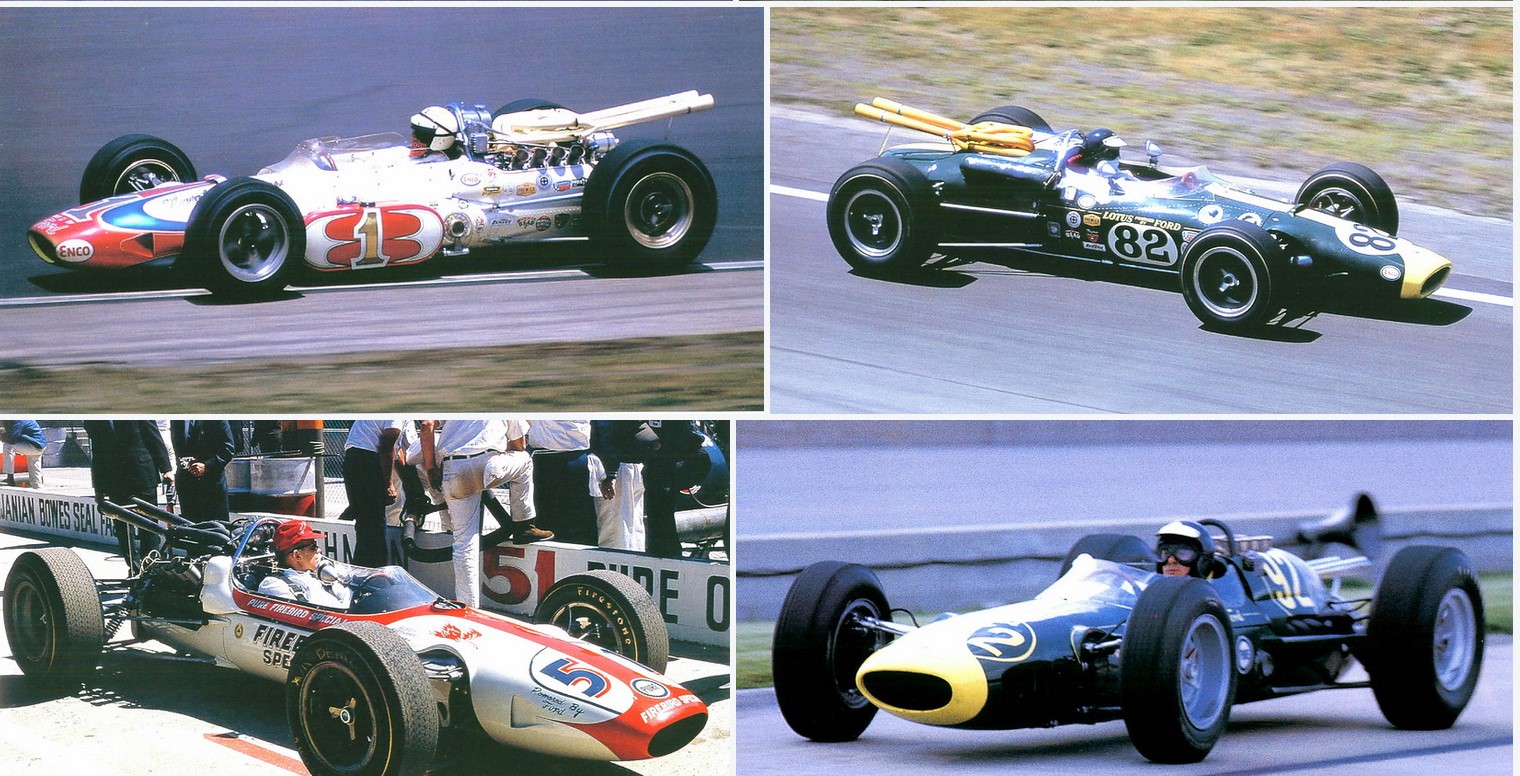 The Lotus 38 was the first rear-engined car to win the Indianapolia 500 in 1965, driven by Jim Clark It was run by lotus at Indianapolis from 1965 to 1967; a total of 8 were built, most for use by Lotus, but several were sold for use by other drivers, including A J Foyt and Mario Andretti.