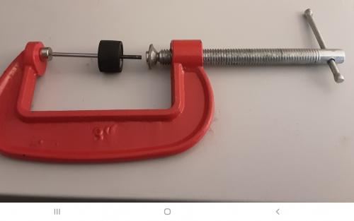 My DIY balancer made from a G-clamp, an old axle and 2 button magnets shown.