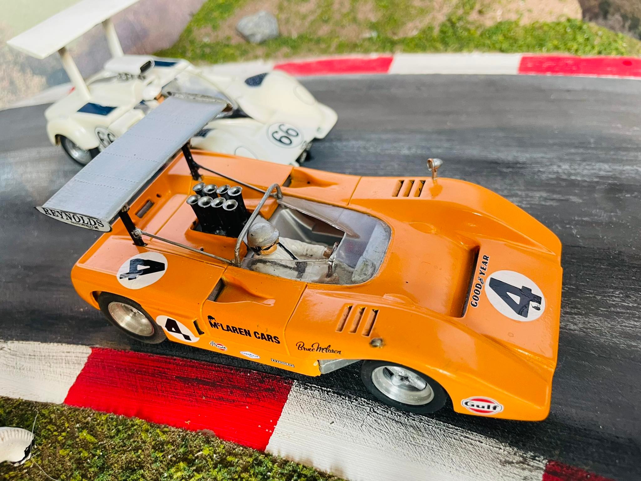 I don't have much in the way of Can Am cars. But a Carrera McLaren M20 at a slot car show caught my attention. The front wheels flopped around like dead fish. One mirror was missing. The usual abuse. The car ran like poop as expected.