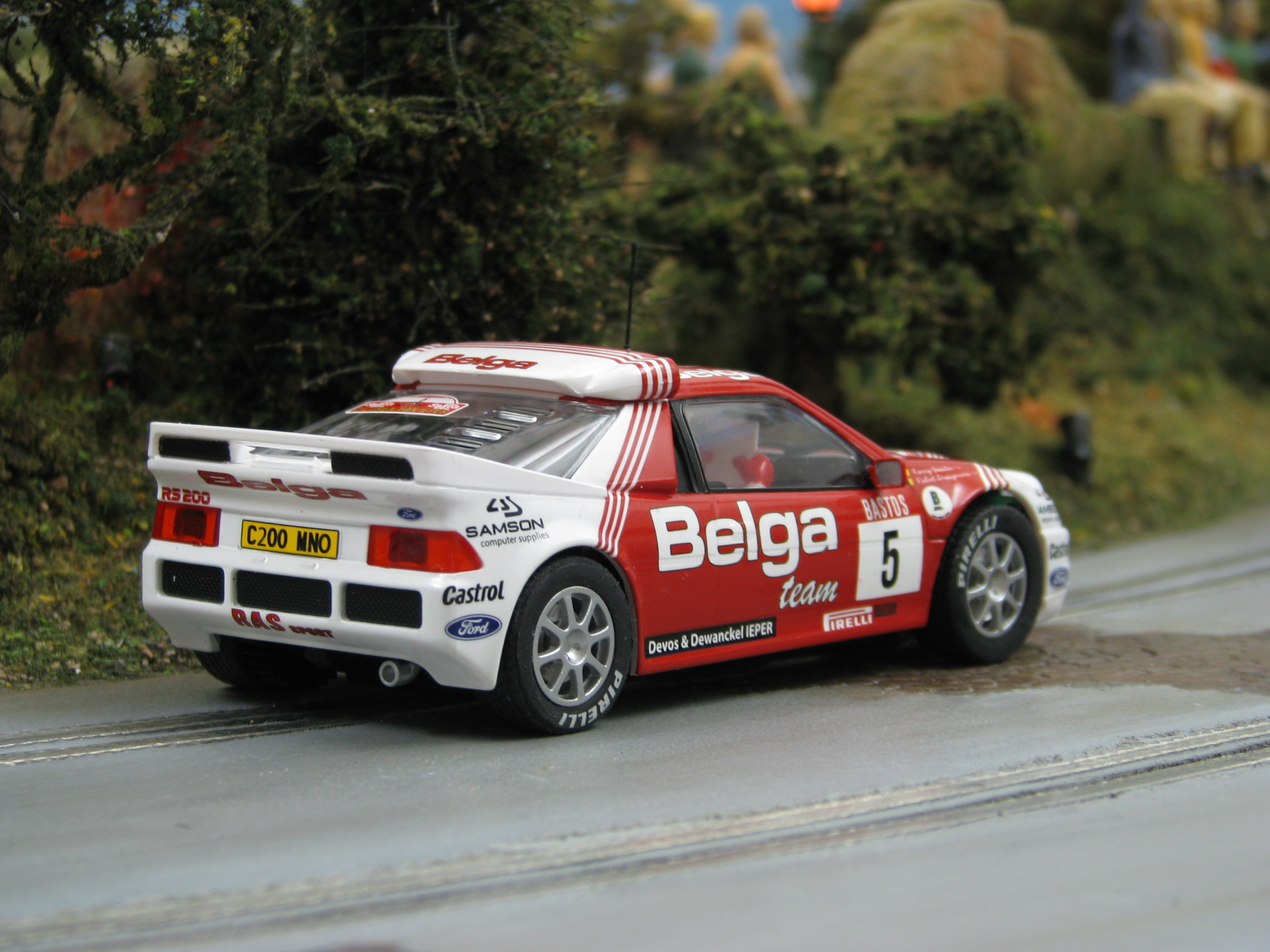 Scalextric Ford RS 200 of Ypres Rally 1986 winner Robert Droogmans. In that year he also became Belgium International Rally Champion.