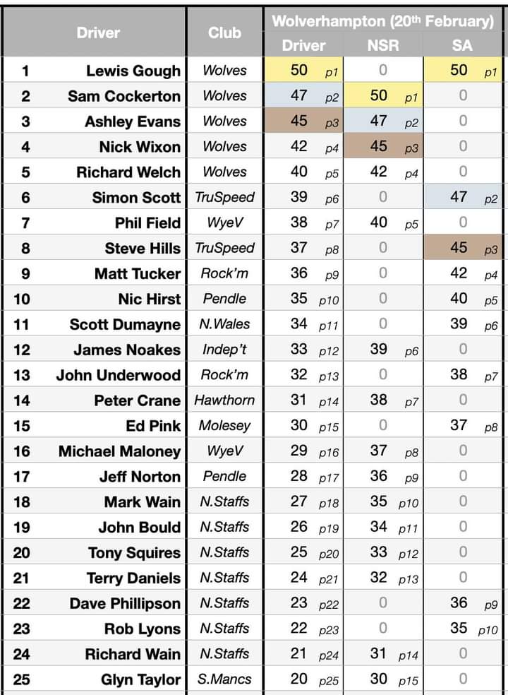 Round 1: Wolverhampton SCC, Sunday 20th February